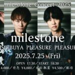 - 2025/7/25(金)mic-alone Concert 2025『milestone』@渋谷PLEASURE PLEASURE 開催日程 : 2025年7月25日(金) 会場 : 渋谷PLEASURE PLEASURE(https://ple… 続きを読む: 2025/7/25(金)mic-alone Concert 2025『milestone』@渋谷PLEASURE PLEASURE 開催